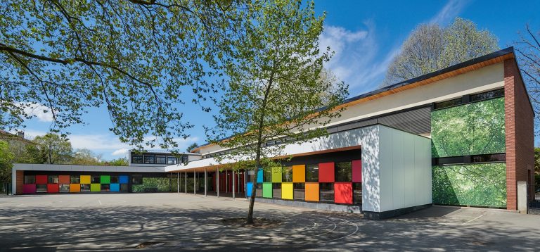 Till Ecole Laurier användes fasadskivor med digital print.