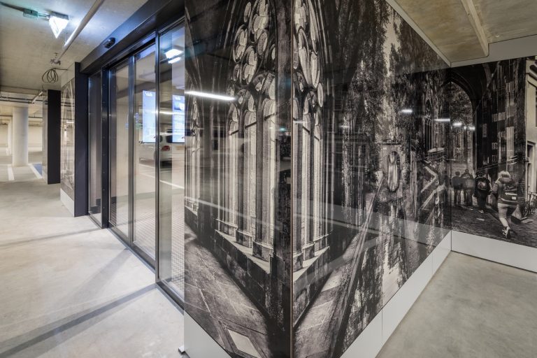 Till Hotell van Der Valks parkeringshus användes kompaktlaminat med digital print.