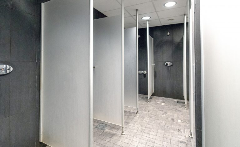 Genom att använda samma profilsystem som Space skärmväggssystem så har vi inte behövt pruta på kvaliteten utan fått en enkel men pålitlig konstruktion som alltid fungerar tack vare det genomtänkta profilsystemet. Frost skärmväggssystem är ett klokt val för offentliga duschutrymmen för gym, hotell, idrottsanläggningar m.m. för att bara nämna några.