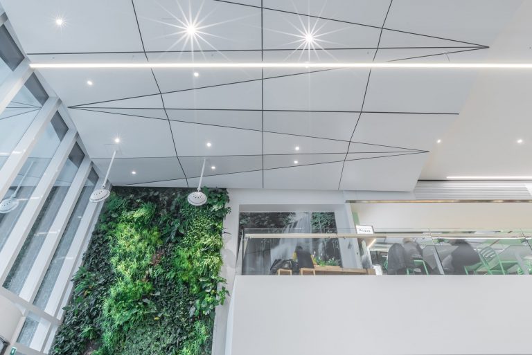 Till ett shoppingcenter i Italien användes väggpaneler av kompaktlaminat.